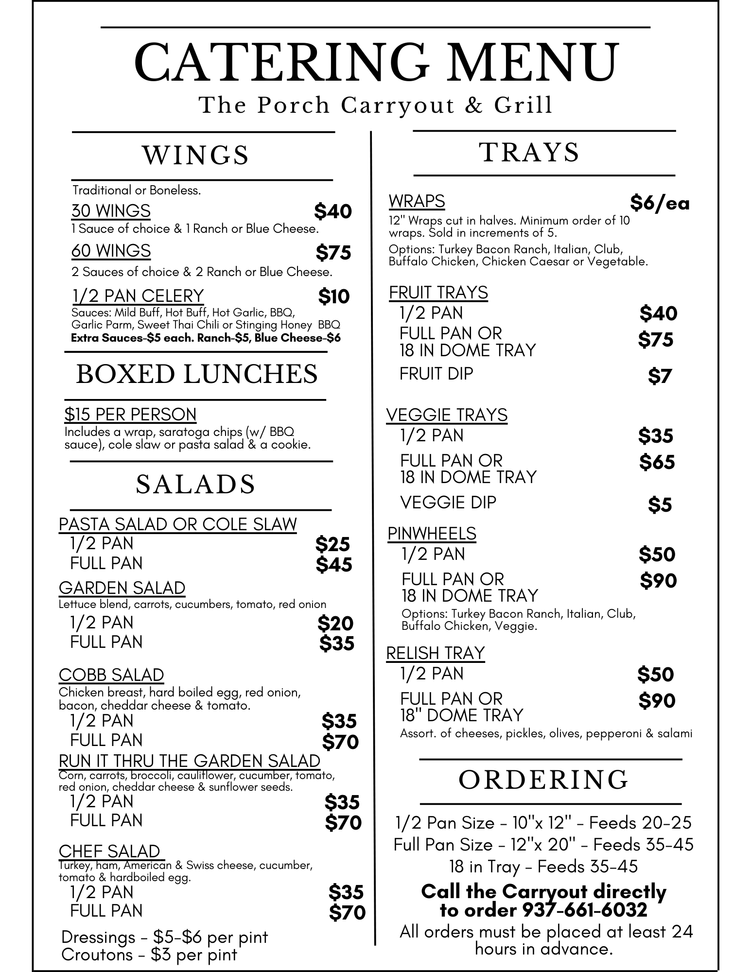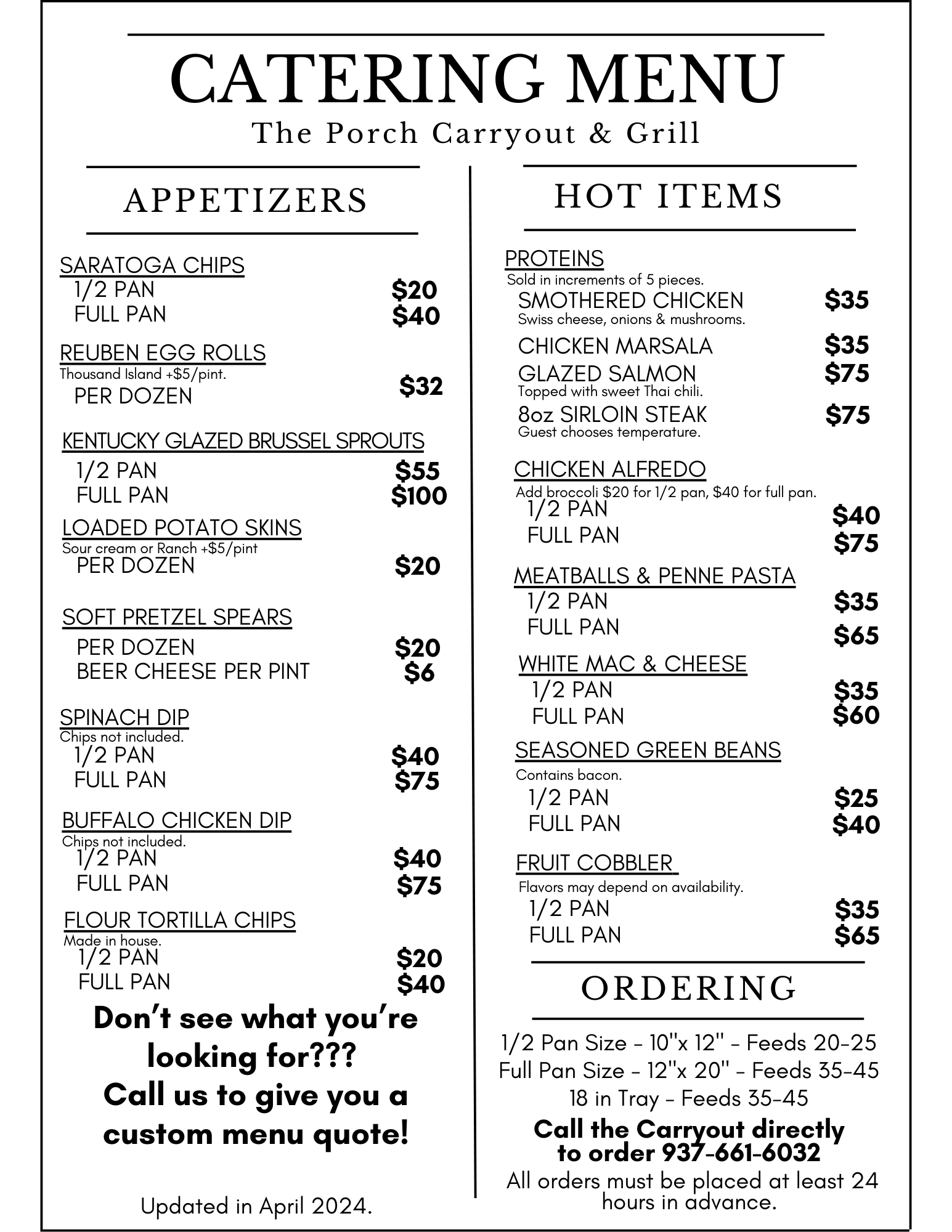 At this time we do not offer off-site catering. We hope to offer more catering options in the future.